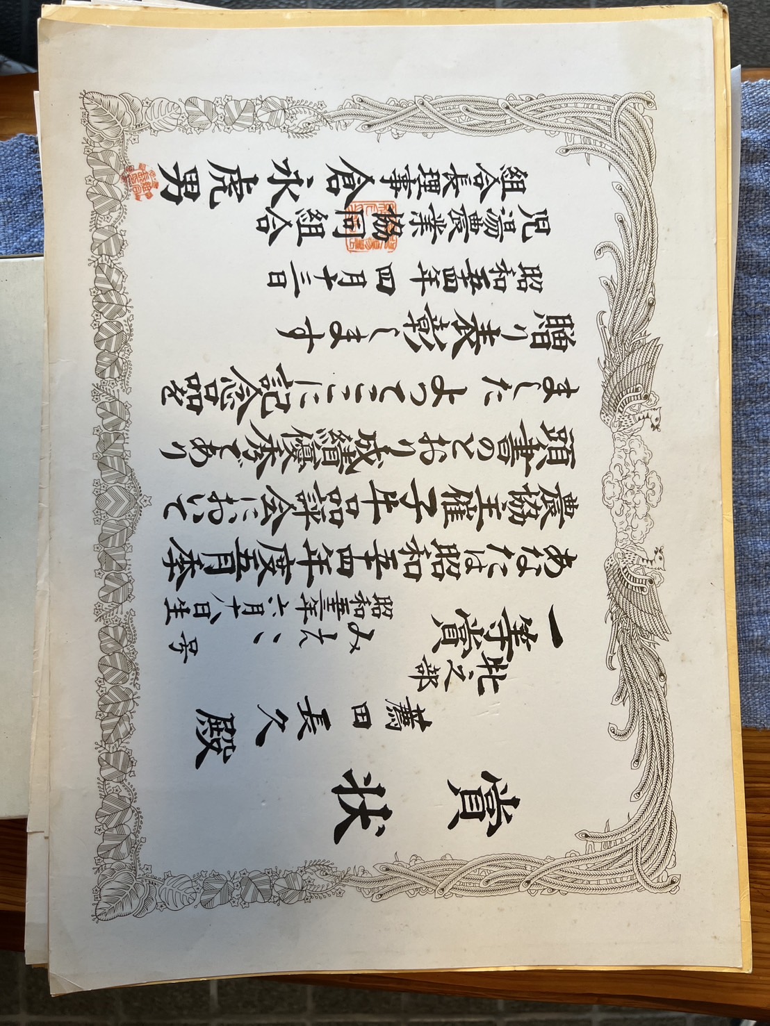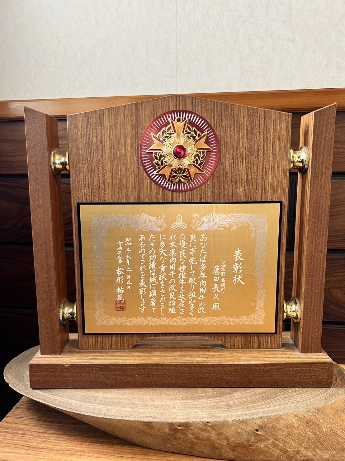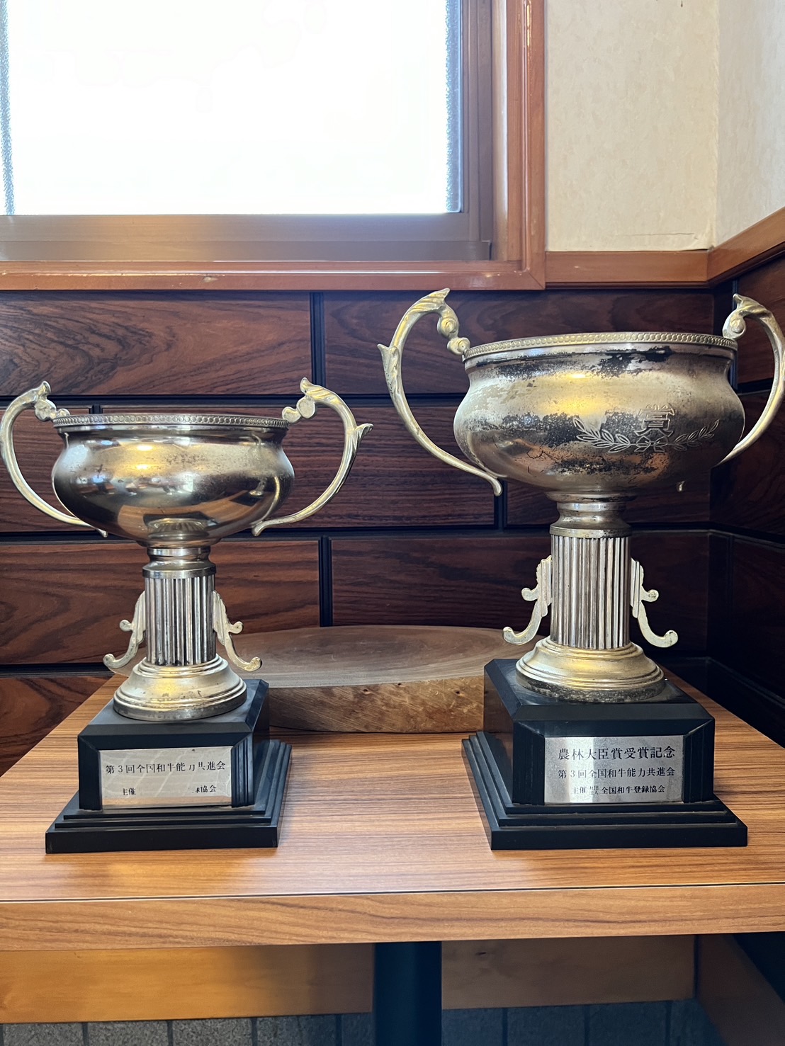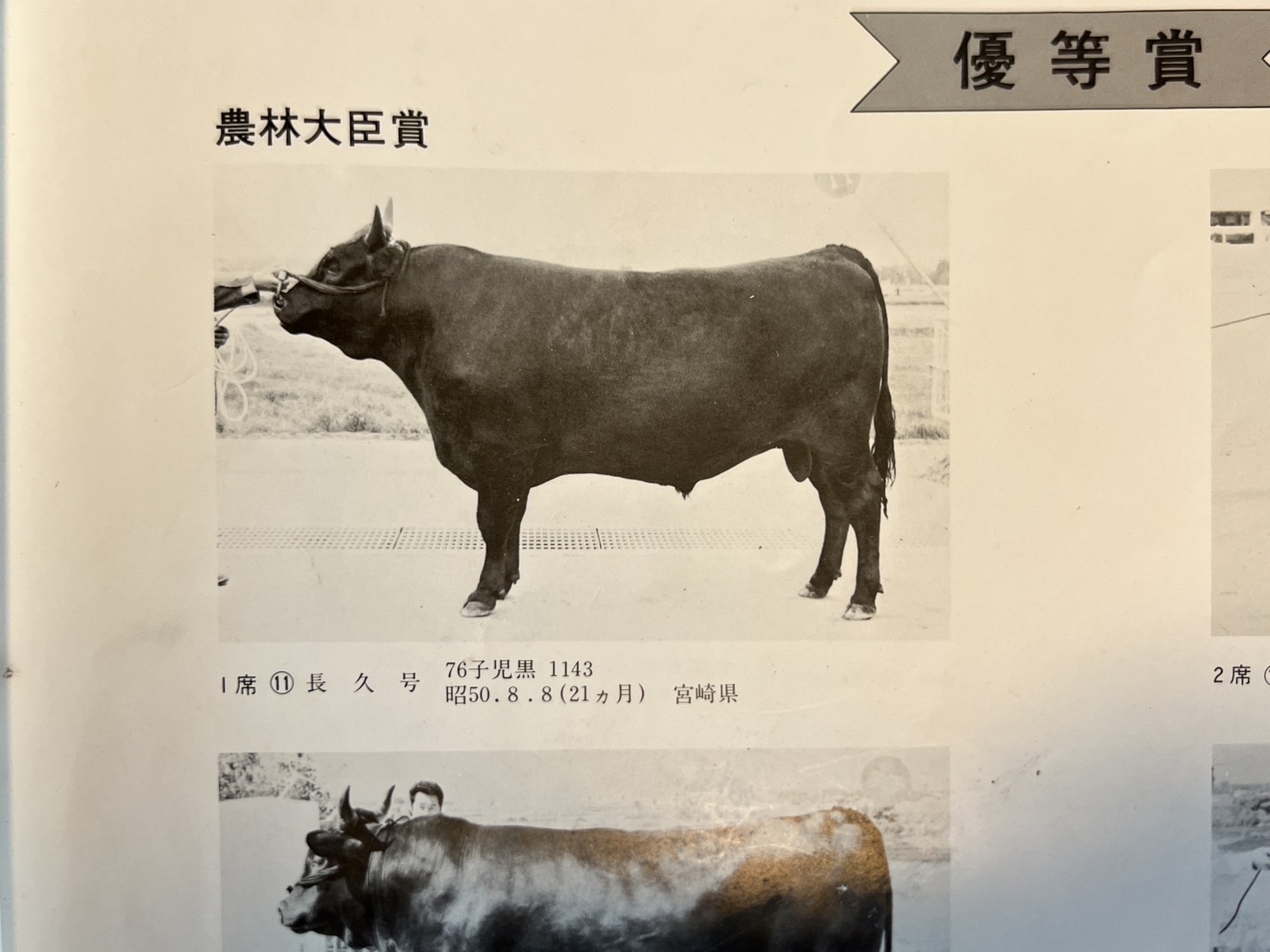 *第三屆(1977年)⽇本全國和⽜能⼒共進會 ⿊⽑和⽜部⾨ 優勝 獲農林⽔產⼤⾂獎