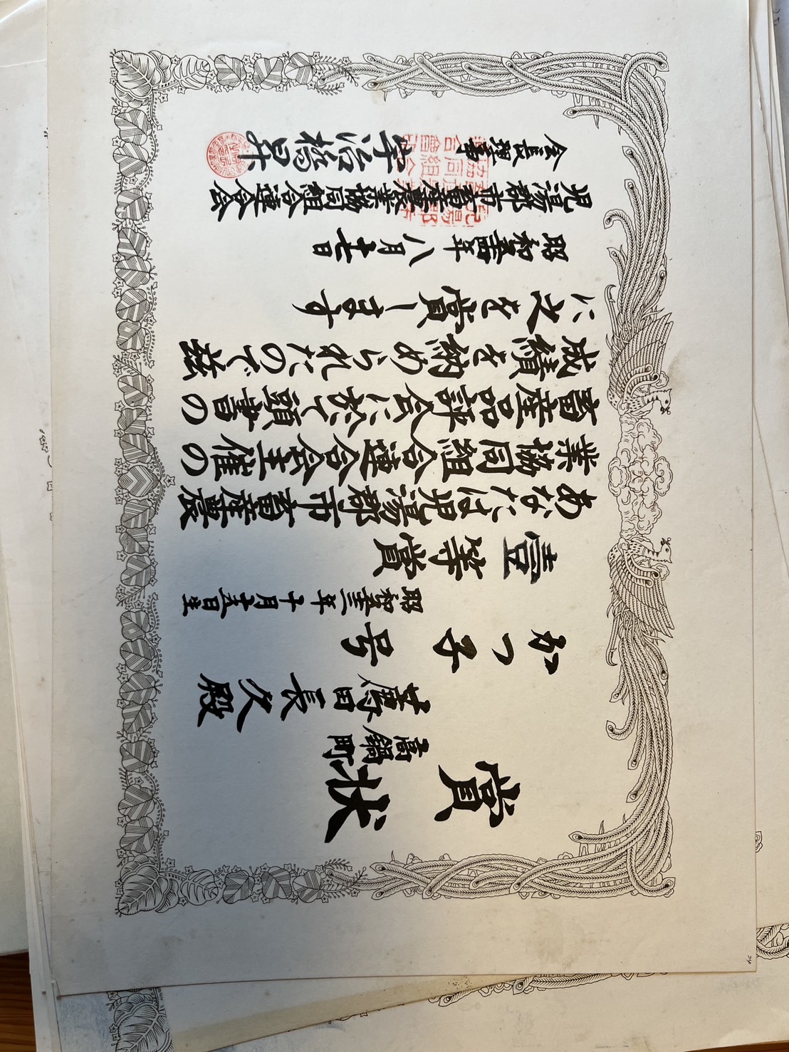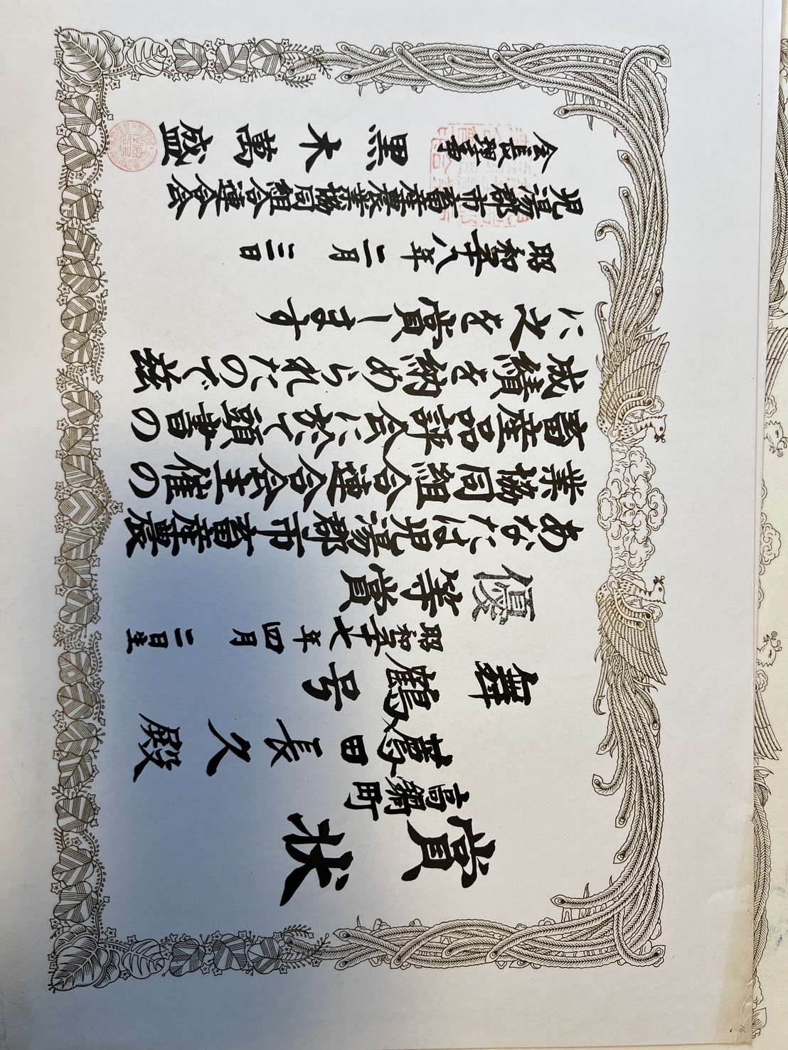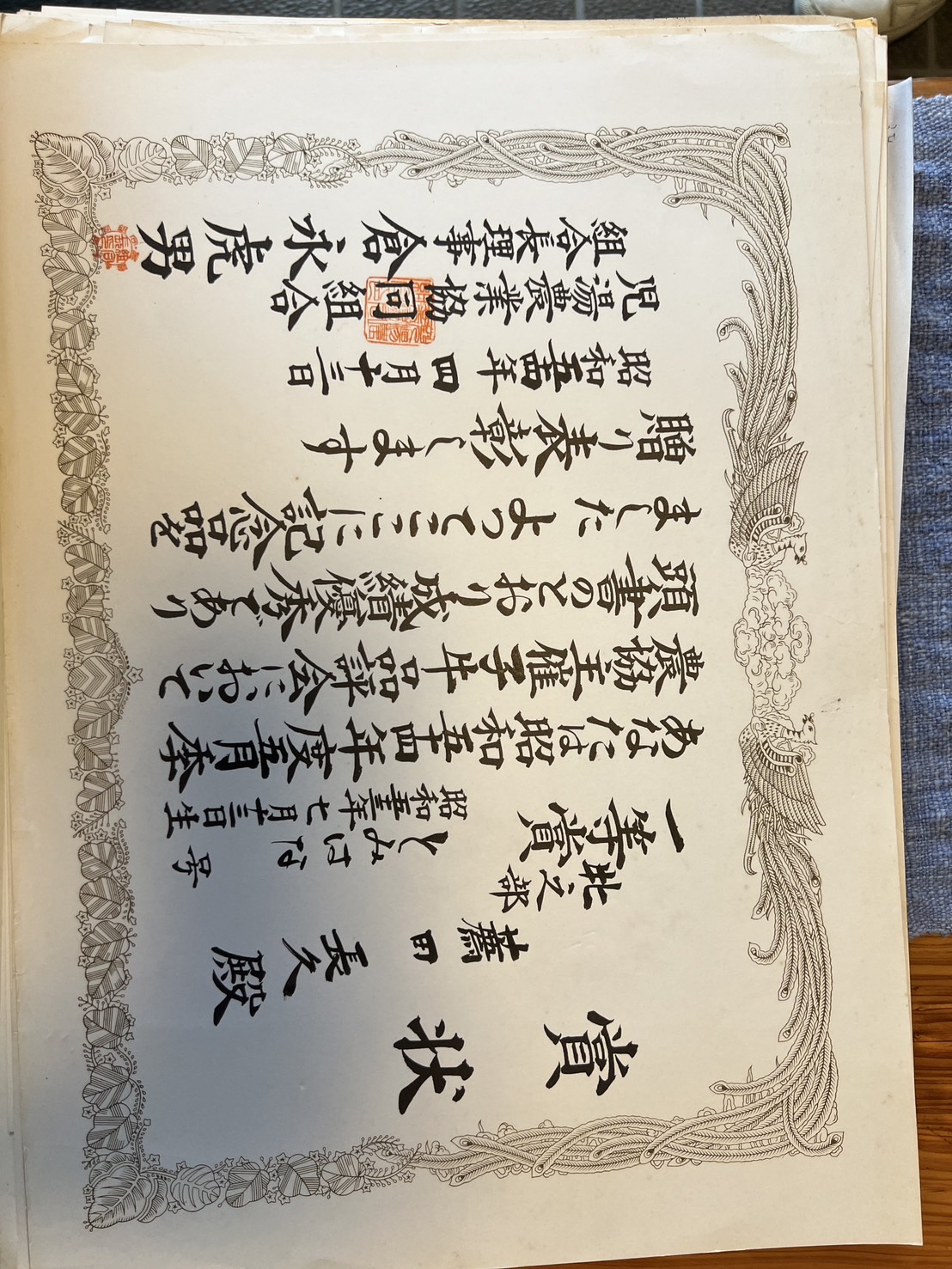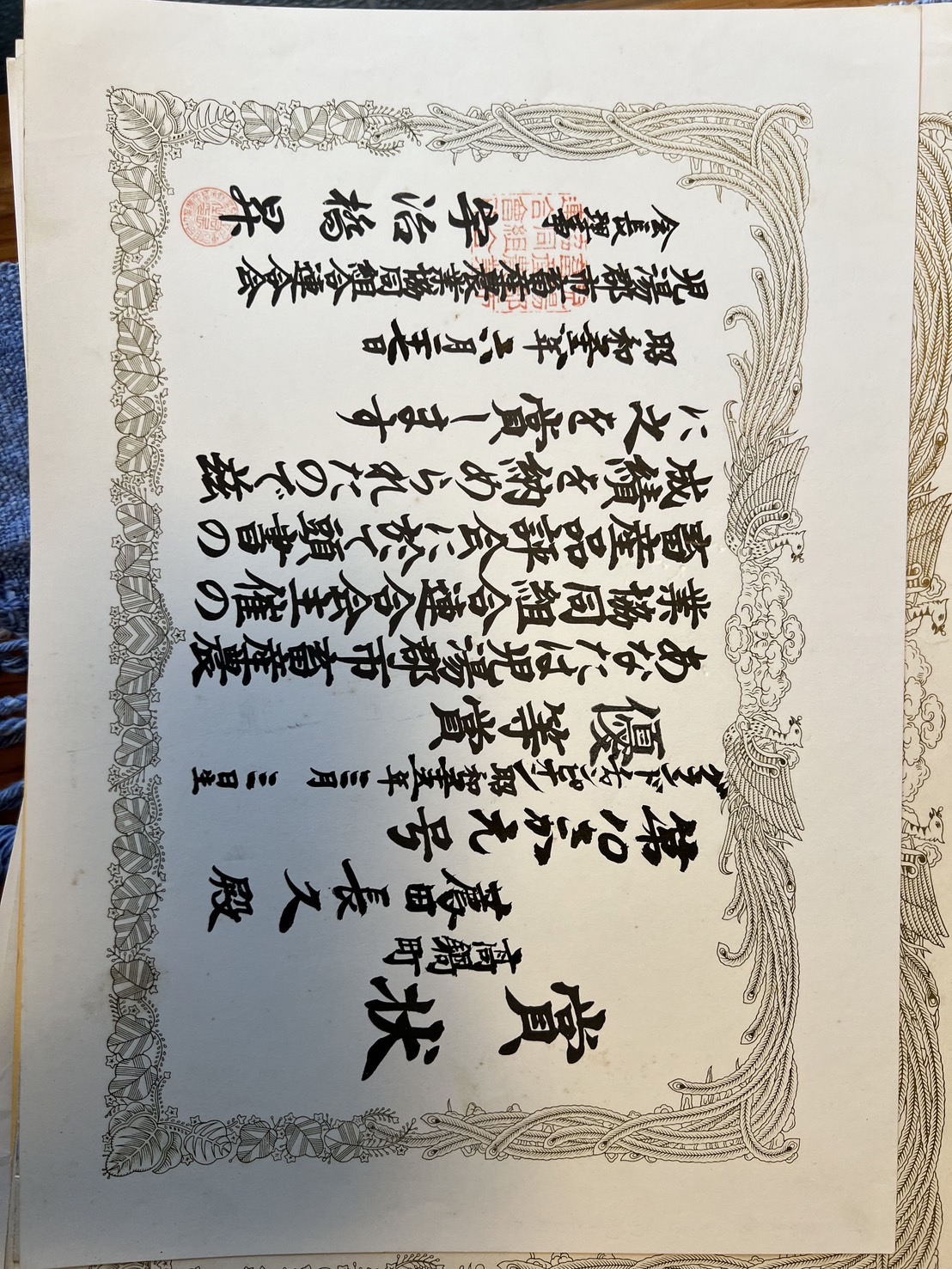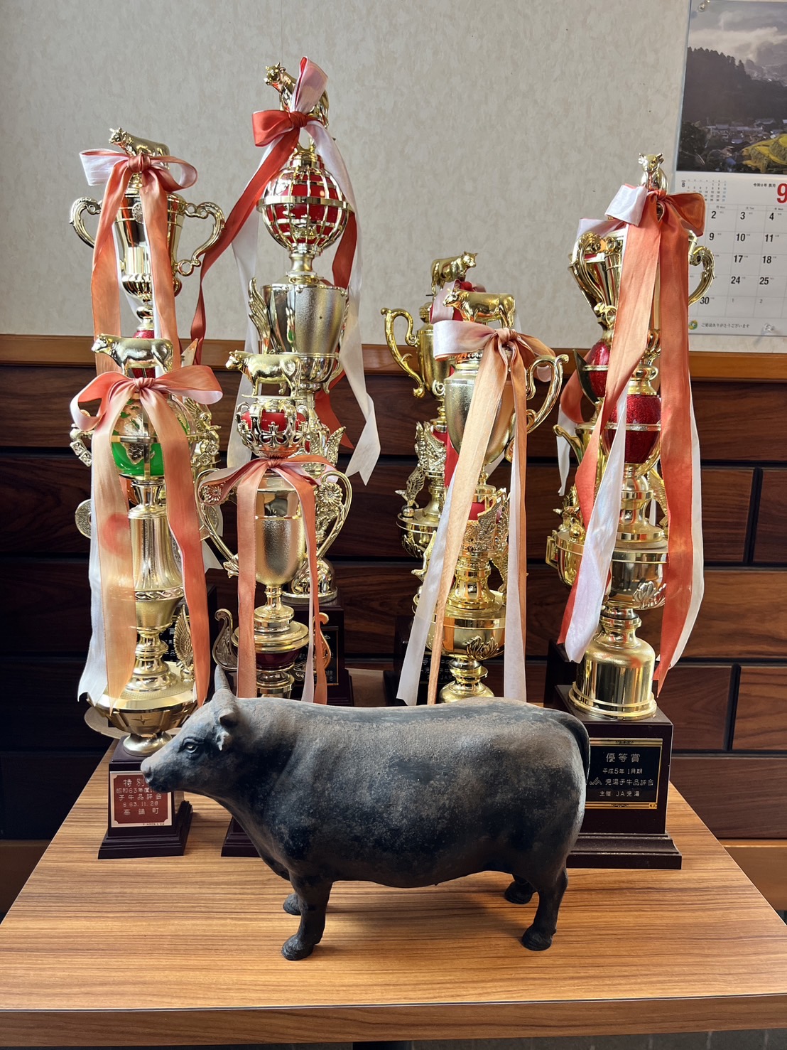 *第五屆(1987年)⽇本全國和⽜能⼒共進會 ⿊⽑和⽜部⾨ 優勝 獲農林⽔產⼤⾂獎